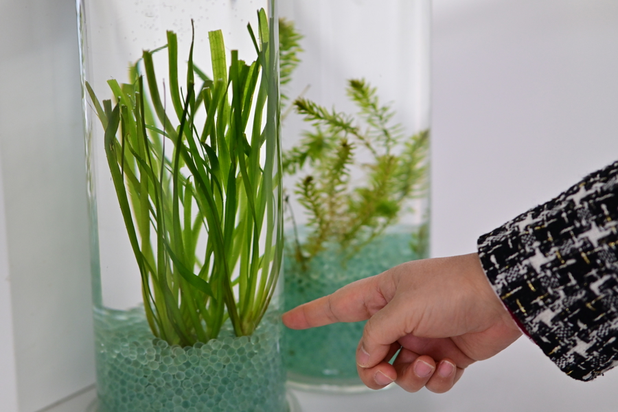 这就是上海海洋大学水产与生命学院王丽卿教授。其实,她并非养鱼专家,而是养水专家。大湖里的“工具鱼”,都是她综合生态治理的打工仔;而当她回到海大实验室,标本罐里的种种水草才透露出治水主力品种。“瞧,这就是苦草,四季常绿,这大冬天也不怕冷,”这位“水草教授”默默见证着各地江河湖泊变清变绿。