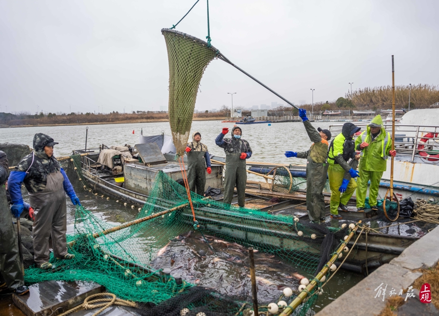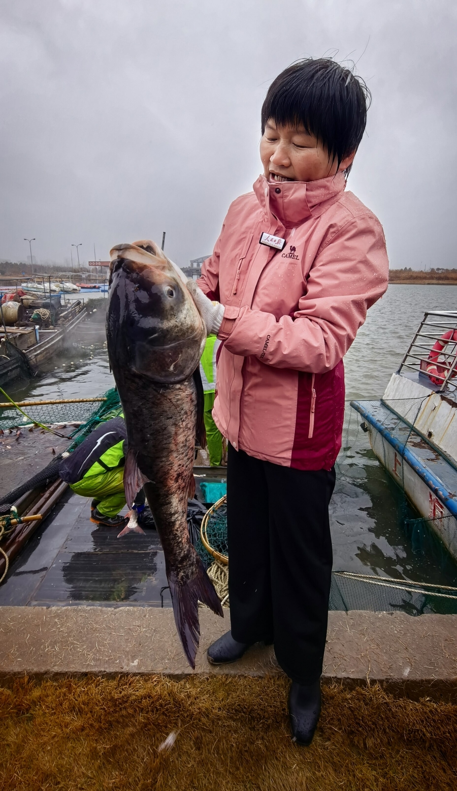 1月20日,上海临港滴水湖畔,大风大雪中,一个穿着冲锋衣的女老师贴着靠岸中的巨网,从船上徒手抓起一条十多斤的大鲢鱼。当天,她团队放养了四五年的花鲢、白鲢,迎来轮捕的日子。从十几公里长的岸线收网,一天鱼获达好几万斤——“瑞雪丰年,年年有鱼!”